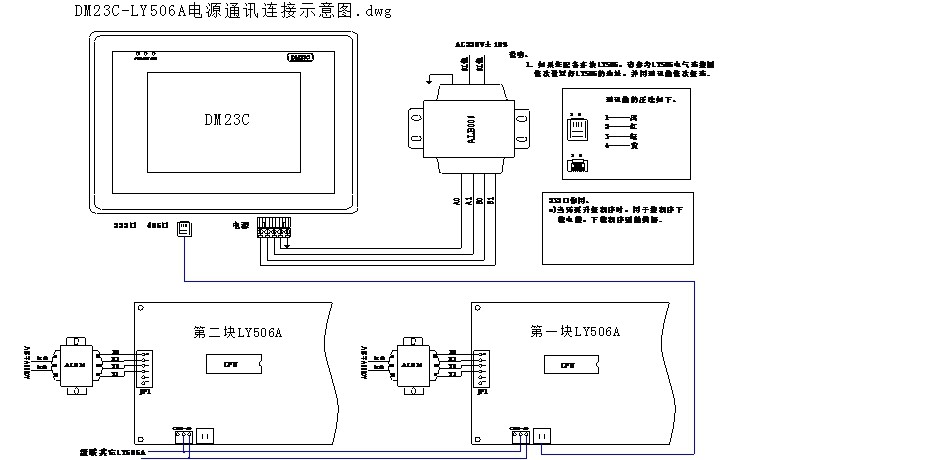 2.2、瀚信德品牌低溫冷水機(jī)DM23C電源、通訊連接示意圖: